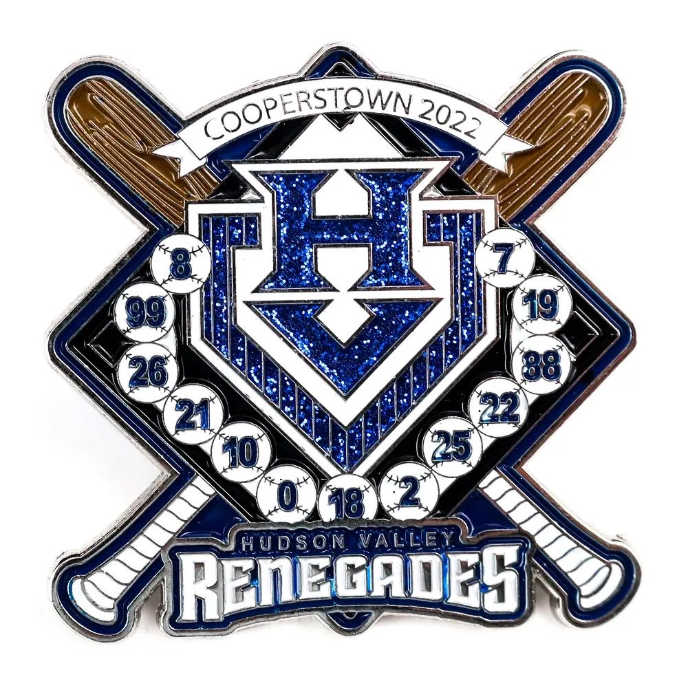 Beyond size and design, there are various fabrication choices for custom baseball pins, like plating, attachment methods, and packaging, all of which can align with your preferences. For a truly eye-catching pin, you can add upgrade options such as glitter, blinking lights, glow-in-the-dark, or slider effects.
